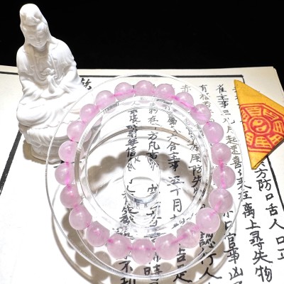 開光靚貨-天然馬達斯加粉水晶手鏈